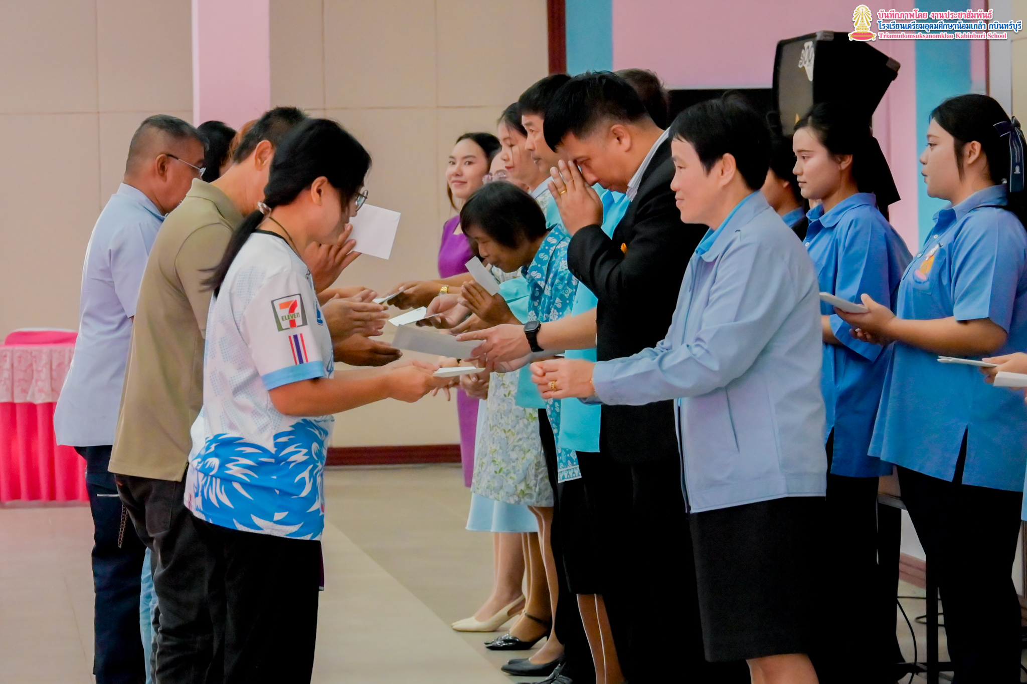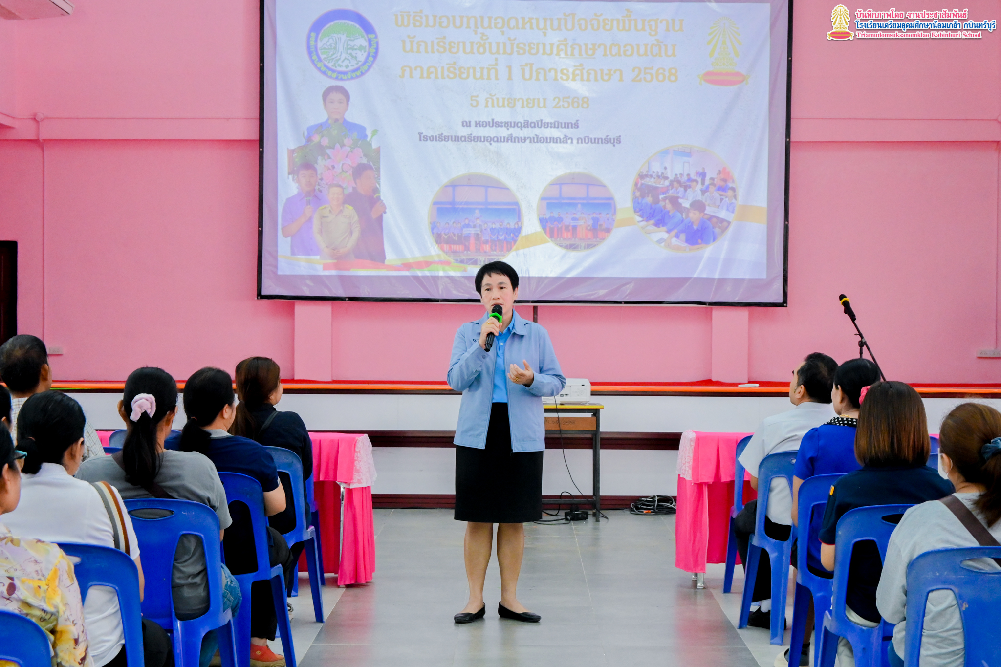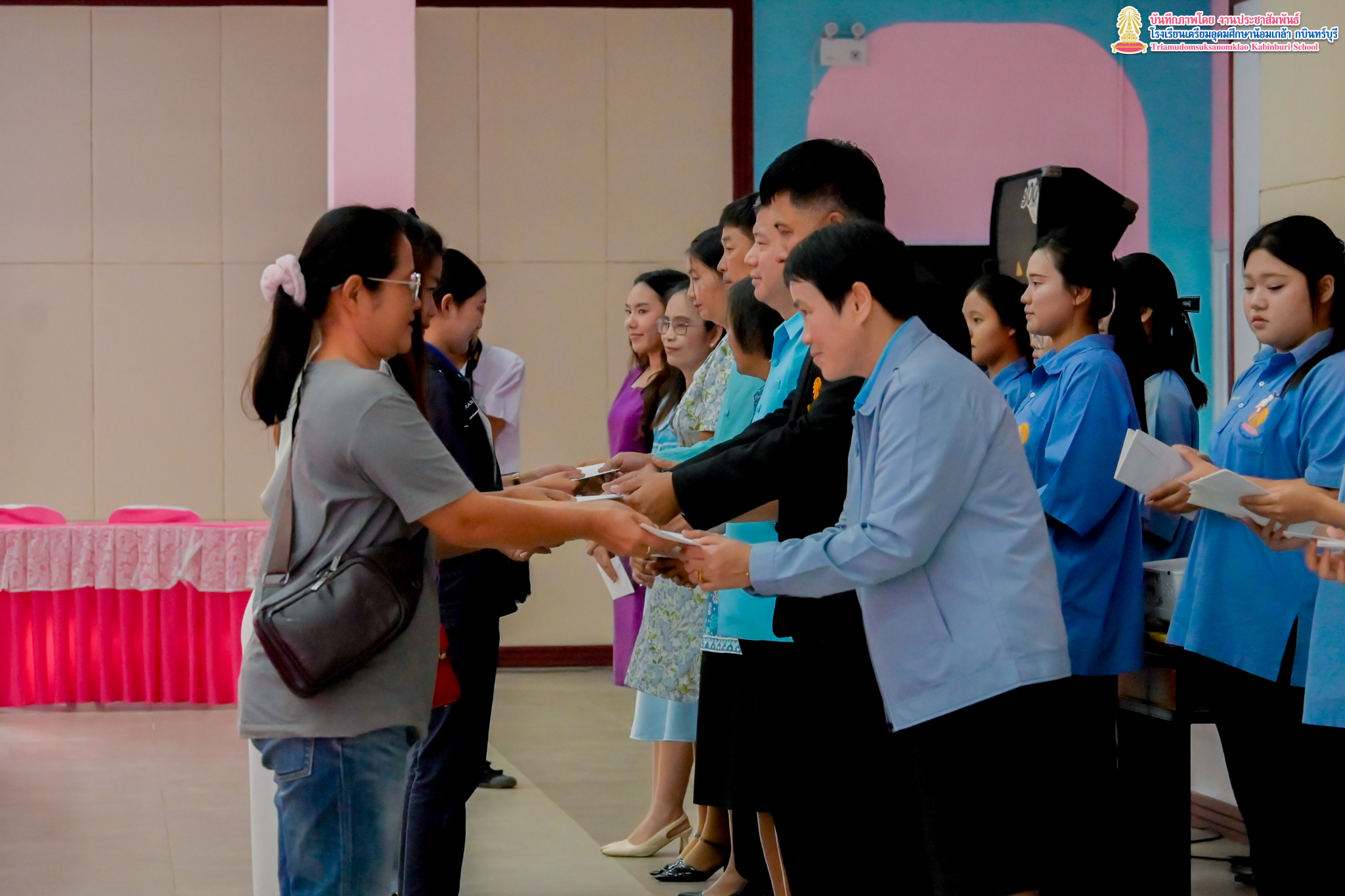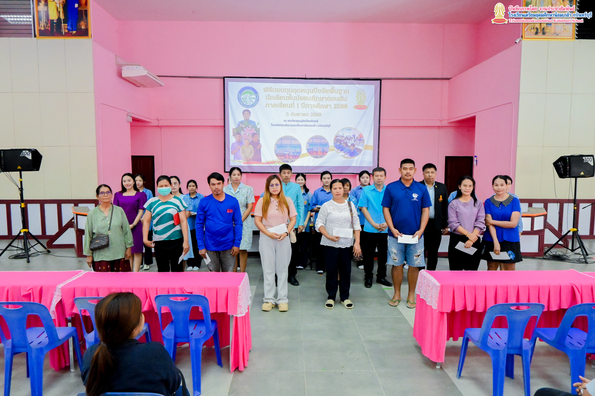 งานแนะแนว กลุ่มบริหารงานวิชาการ โรงเรียนเตรียมอุดมศึกษาน้อมเกล้า กบินทร์บุรี ได้จัดพิธีมอบทุนการศึกษา ประเภท ทุนปัจจัยพื้นฐาน ให้แก่นักเรียนระดับชั้นมัธยมศึกษาตอนต้น โดยมีผู้ปกครองของนักเรียนเป็นตัวแทนในการรับมอบทุนการศึกษา