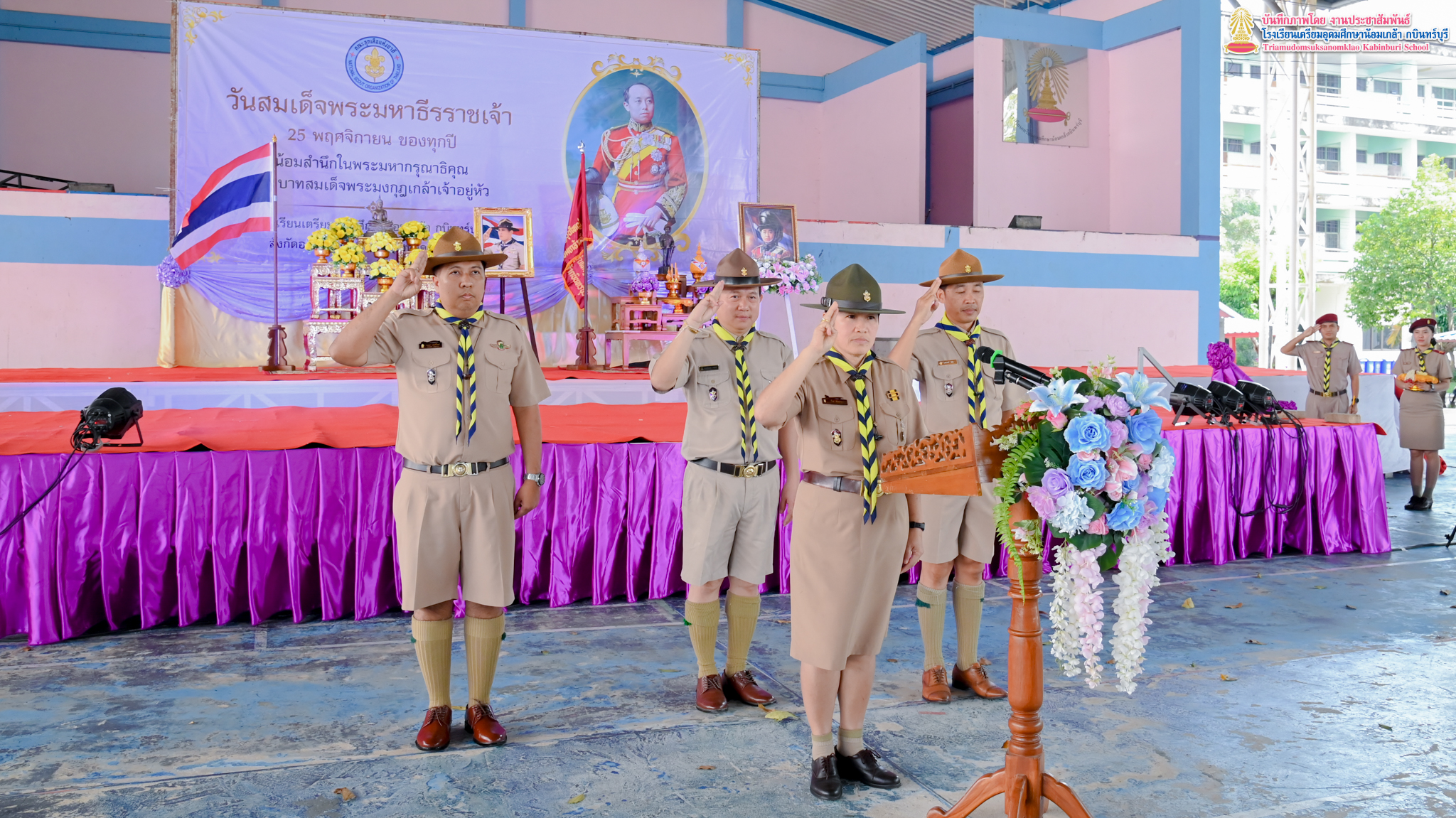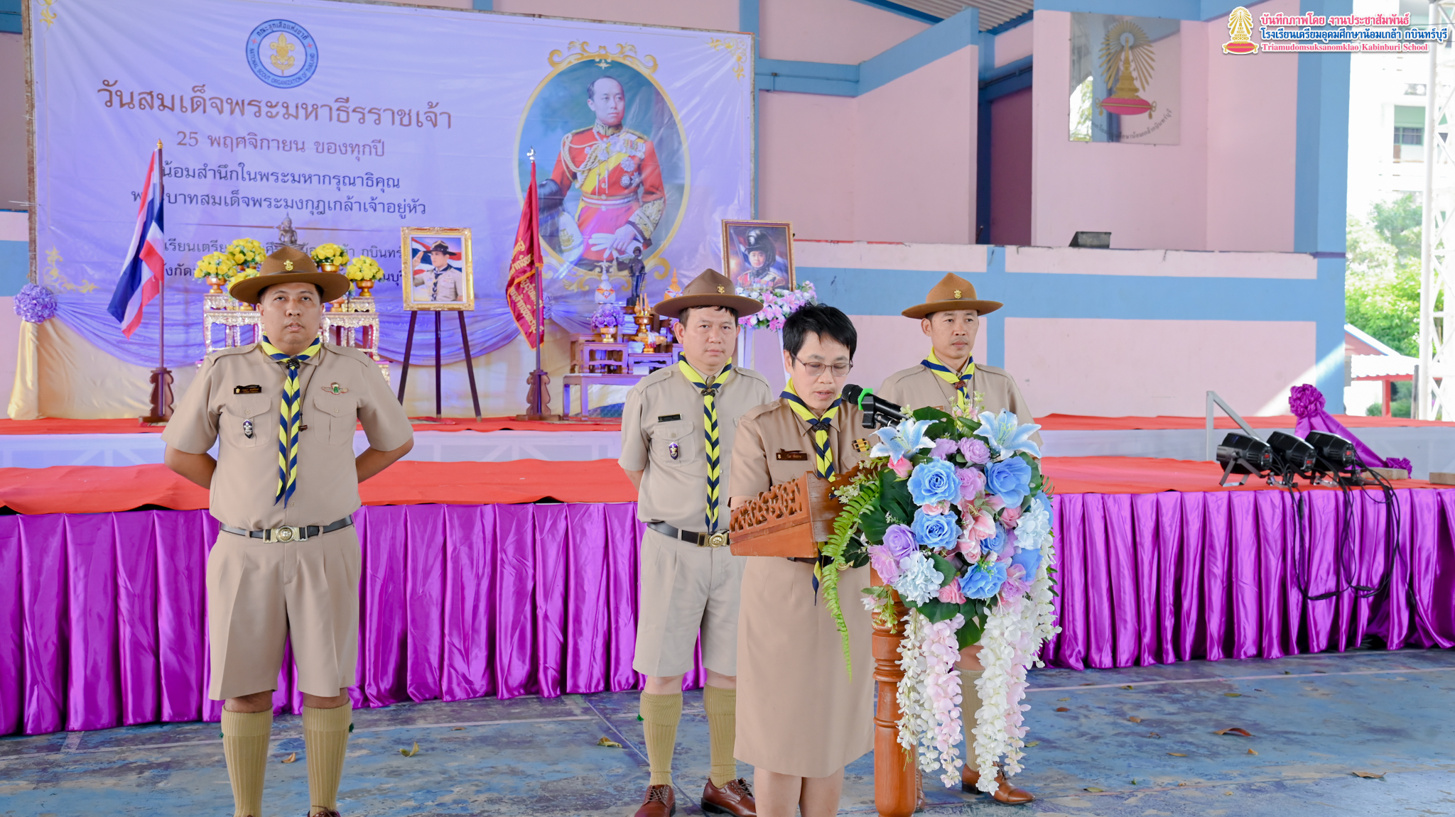 นางสาววิไล พังสอาด ผู้อำนวยการสถานศึกษาโรงเรียนเตรียมอุดมศึกษาน้อมเกล้า กบินทร์บุรี พร้อมด้วยคณะครูเเละบุคลากรทางการศึกษา ร่วมพิธีถวายราชสดุดี “วันสมเด็จพระมหาธีรราชเจ้า” ประจำปี 2568 เนื่องในวันคล้ายวันสวรรคตแห่งพระบาทสมเด็จพระมงกุฏเกล้าเจ้าอยู่หัว รัชกาลที่ 6 เพื่อเทิดพระเกียรติและน้อมรำลึกถึงพระมหากรุณาธิคุณของพระองค์ ซึ่งทรงประกอบพระราชกรณียกิจสำคัญ อันเป็นประโยชน์มากมายมหาศาลต่อประเทศชาติ ณ โดมอเนกประสงค์ โรงเรียนเตรียมอุดมศึกษาน้อมเกล้า กบินทร์บุรี